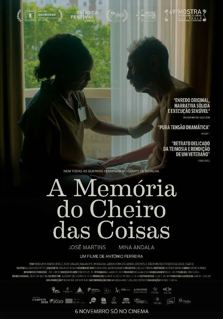 Em, A Memória do Cheiro das Coisas, Arménio, um octogenário ex-combatente da guerra colonial portuguesa, vê-se obrigado a ser internado num lar de terceira idade, onde conhece Hermínia, uma auxiliar negra que cuidará dele. Confrontado com a vulnerabilidade da velhice, Arménio é forçado a enfrentar os fantasmas do seu passado, enquanto uma inesperada amizade floresce entre ele e Hermínia.