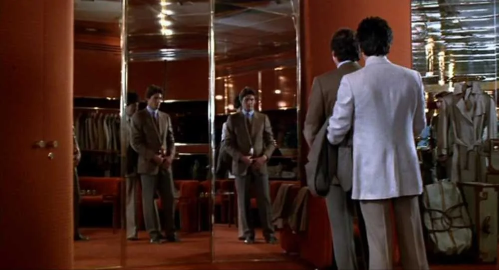 A cena em que ele escolhe roupa, rodeado de camisas, gravatas e casacos espalhados em cima da cama, é talvez uma das cenas mais eróticas de organização doméstica alguma vez filmadas. Ali não estamos só a ver um homem vestir-se. Estamos a vê-lo montar a sua própria ficção. E qualquer filho de alfaiate entende isso sem precisar de notas de rodapé ou críticas de cinema.