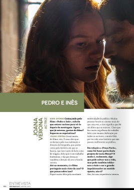 JOANA   VERONA   ACTRIZ  filme «Pedro e Inês», referiu   pessoas foram ao cinema mais do         história que contamos, seja pelo   de Melhor Atriz foi atribuído à   cinema na sua vida? Algum